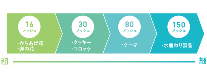乾燥おからの細かさと利用例